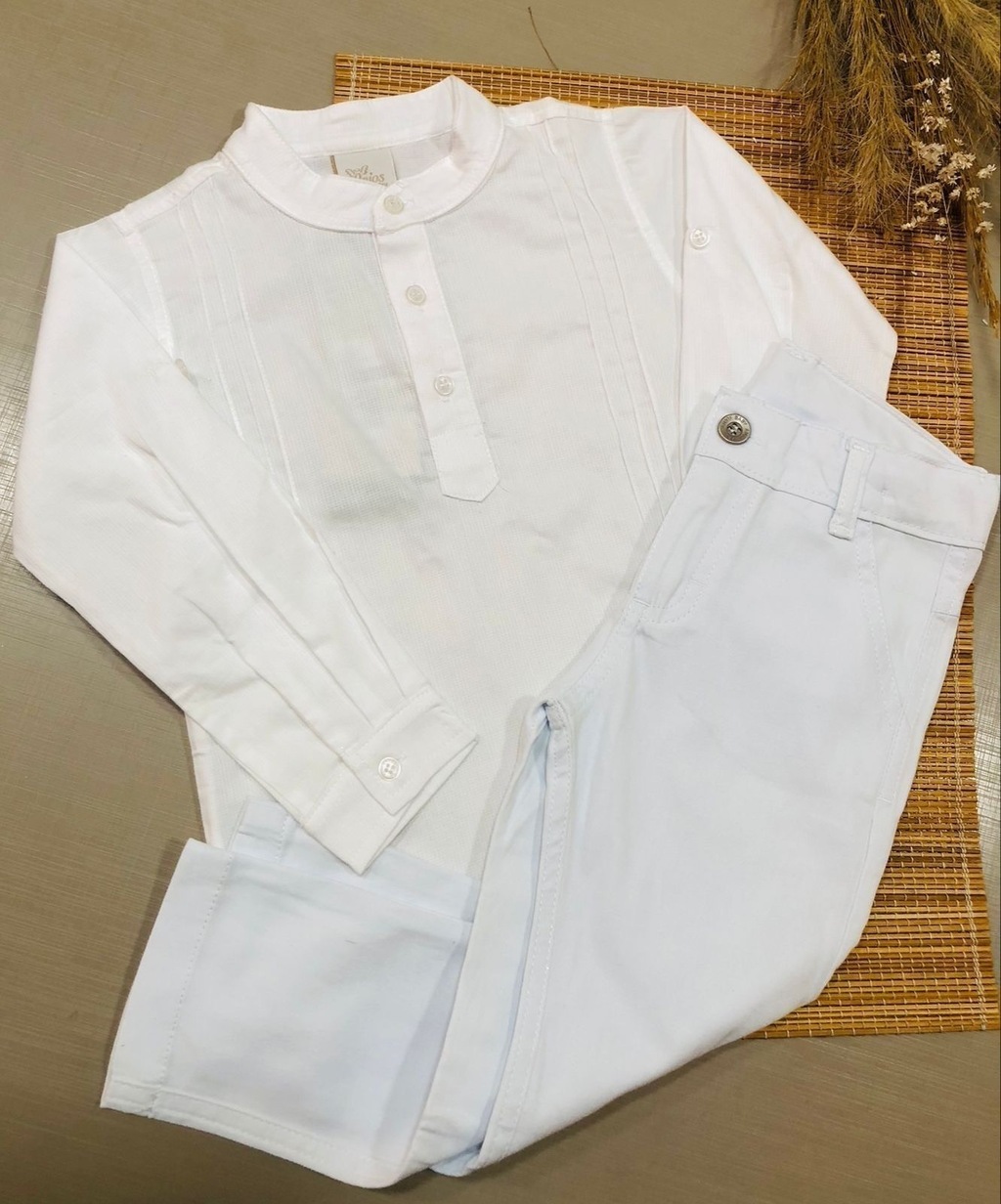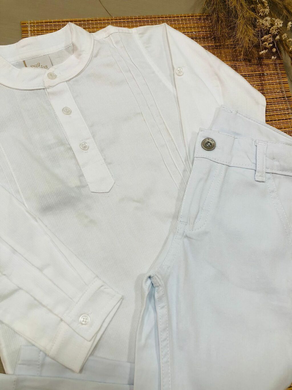 Características: - Design Elegante: A camisa gola padre confere um toque clássico, perfeito para cerimônias e eventos formais. - Conforto Premium: Confeccionado com tecidos de alta qualidade, o conjunto garante liberdade de movimento e conforto durante todo o dia. - Versatilidade: Ótimo para batizados e eventos especiais, este conjunto é a escolha ideal para qualquer ocasião. - Acabamento Cuidadoso: Cada detalhe é meticulosamente elaborado, resultando em uma peça que é tanto bonita quanto durável.