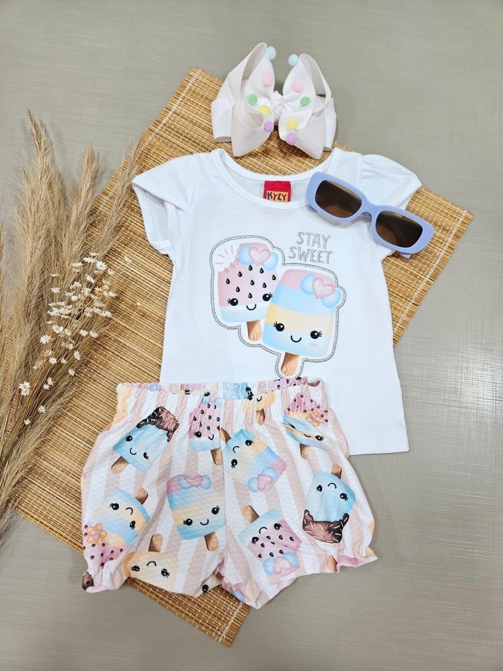 O Conjunto Infantil Picolé é uma escolha encantadora e confortável para sua pequena.