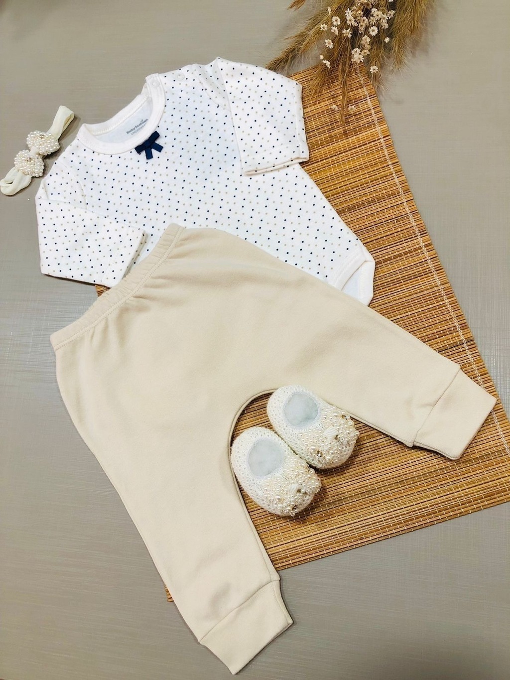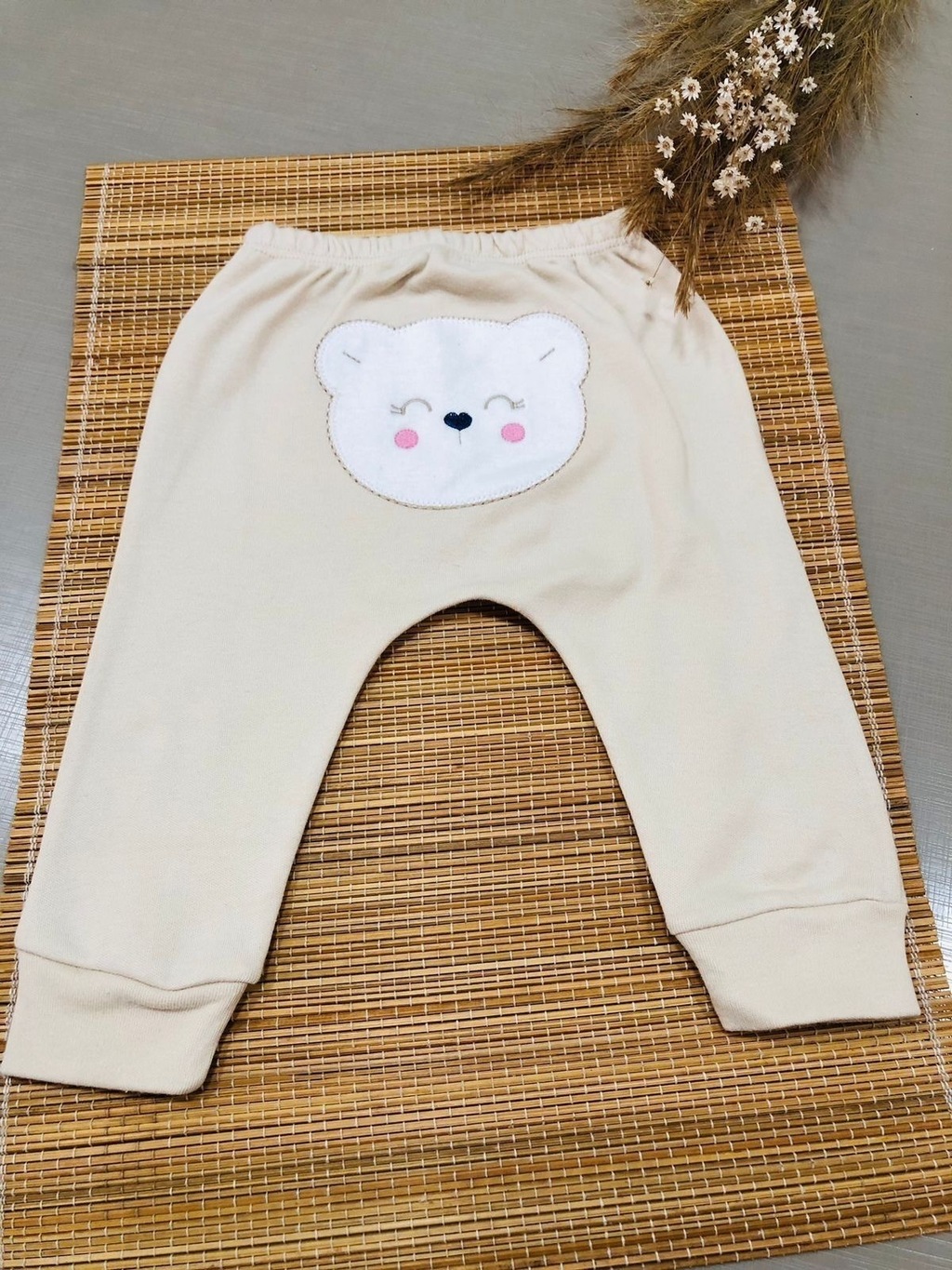 A calça possui elástico na cintura para melhorar a vestimenta do seu baby.