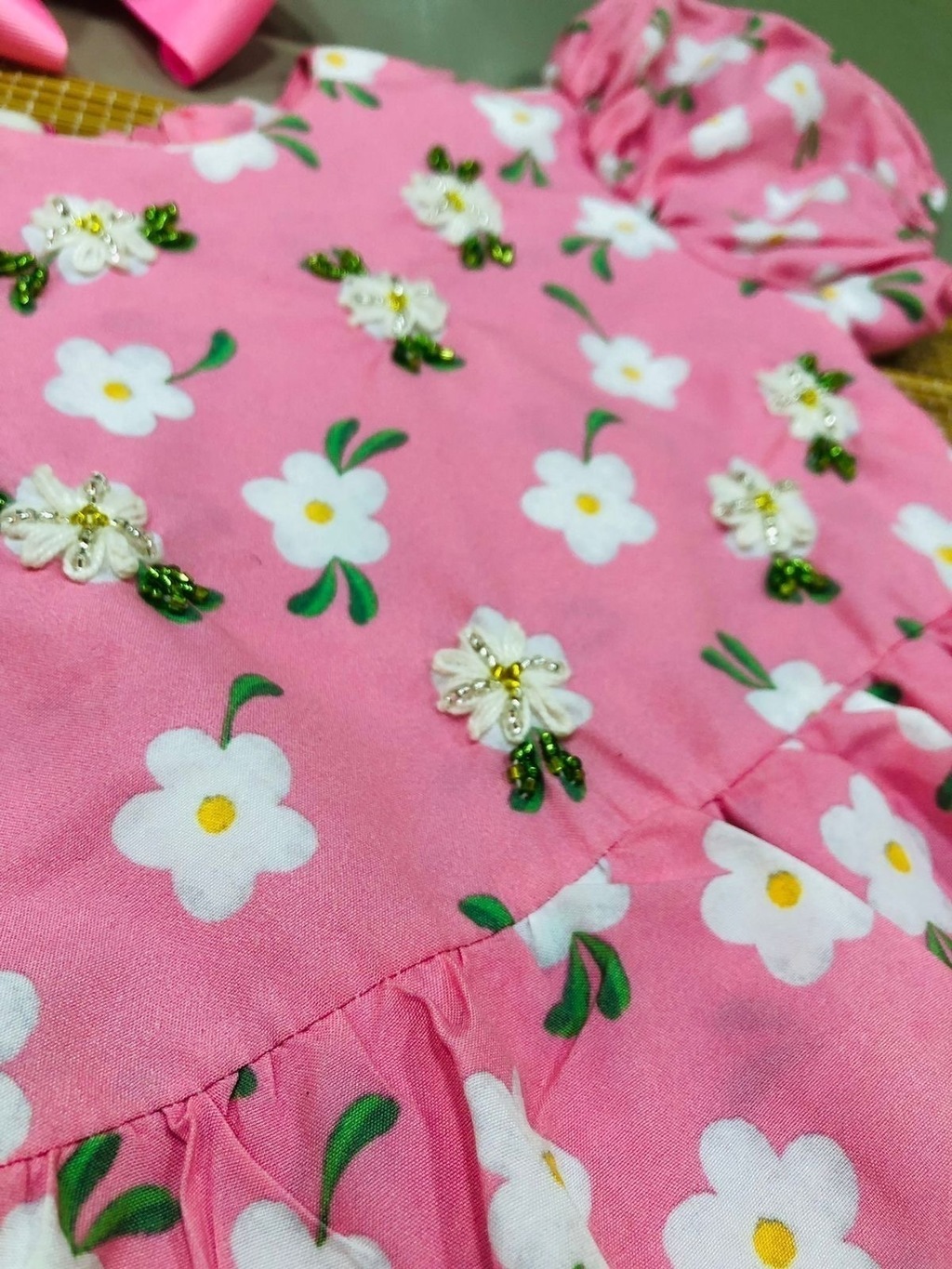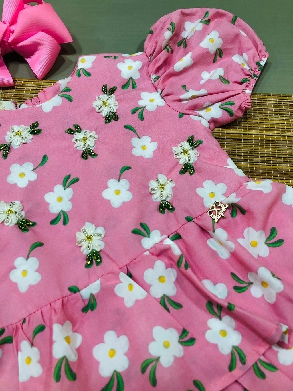 O nosso vestido em camadas apresenta detalhes encantadores que o tornam verdadeiramente especial. O babado na manga acrescenta um toque de delicadeza e estilo, enquanto os bodados à mão proporcionam um charme adicional.